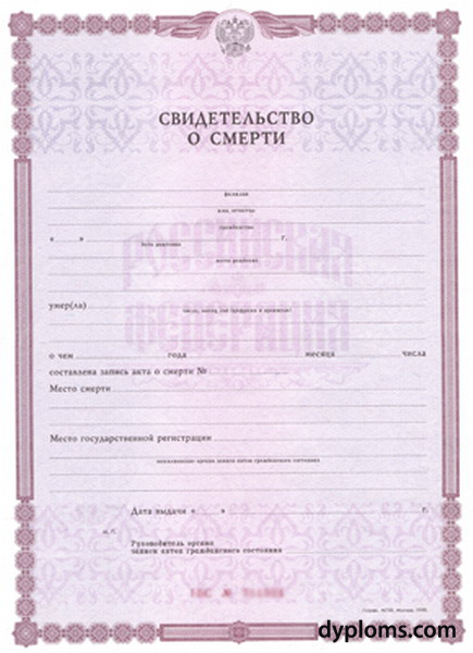 Купить свидетельство о смерти с реестром
